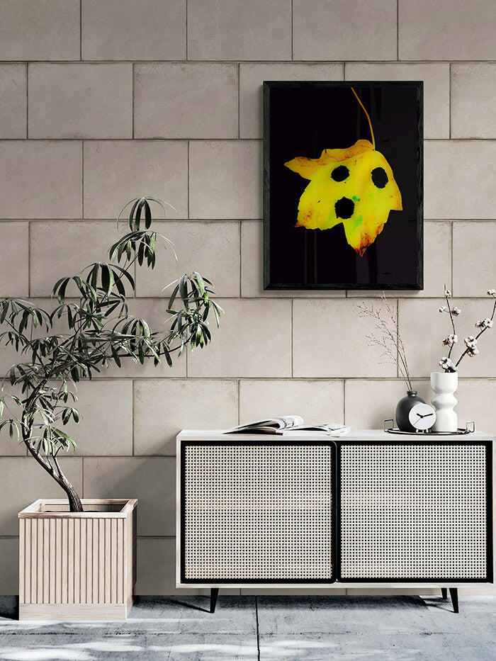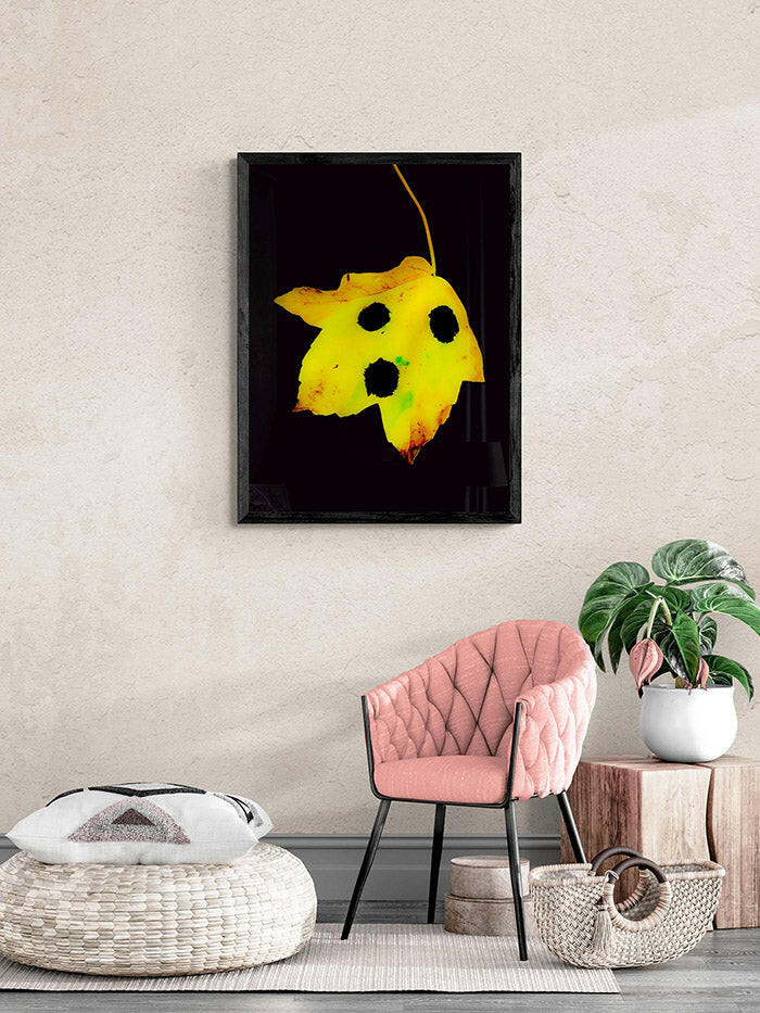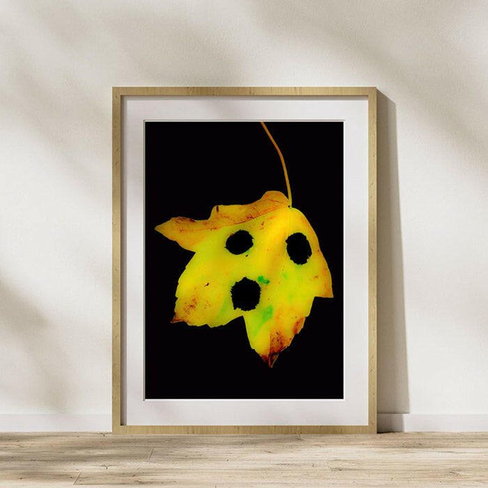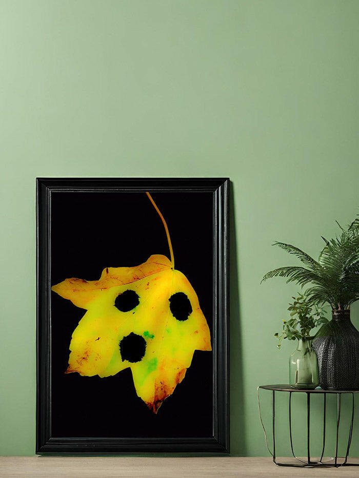 Whimsical 'leaf with a face' wall art, perfect for adding a touch of fun and personality to your home, office, or child's room. The perfect gift for anyone who appreciates the quirky and imaginative.