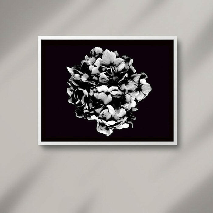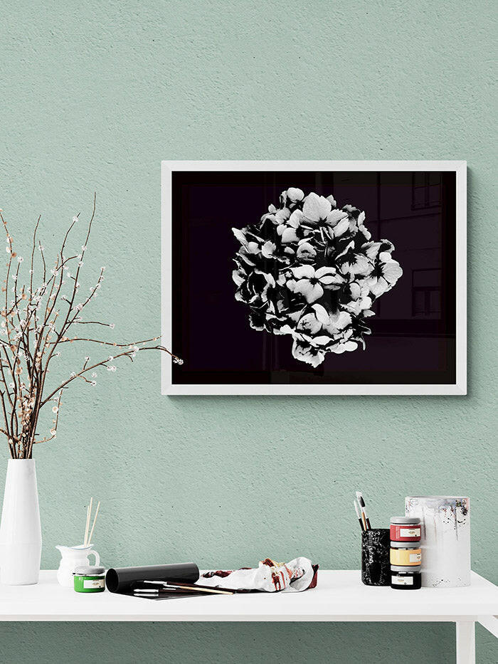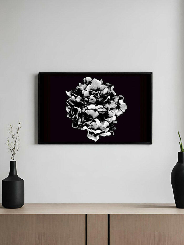 Gorgeous black and white art print of a hydrangea, the perfect statement piece to bring a touch of elegance to your home or office.